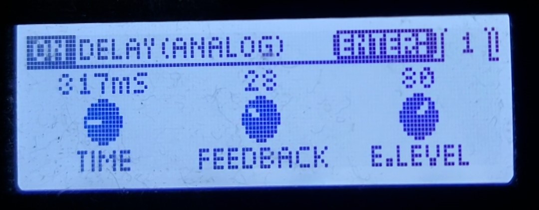 ギター → オクターバー →オートワウ(タッチワウ) → プリアンプ → ディレイ → リバーブ